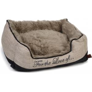 DBL Hondenmand Dallam Met dit hondenkussen van Designed By Lotte haal je een heerlijk zacht ligplekje voor je hond in huis. De buitenkant van de mand is effen beige en de binnenkant van comfortabel imitatiebont. Voorop de mand staat ‘for the love of…’ geborduurd. Het zachte kussen is gemakkelijk uit de mand te halen. Productinformatie: * Verkrijgbaar in verschillende maten: * S: 55 cm (L) x 50 cm (B) x 20 cm (H) * M: 65 cm (L) x 60 cm (B) x 20 cm (H) * L: 80 cm (L) x 70 cm (B) x 22 cm (H) * XL: 95 cm (L) x 80 cm (B) x 25 cm (H) * Materiaal: Stof * Kleur: Beige