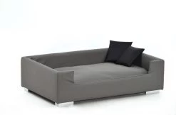 Hondensofa Candy Grijs Orthopedisch Een hondenmand met onvergelijkbaar comfort. Het ligvlak van deze hondensofa past zich door druk en lichaamswarmte optimaal aan uw hond aan en zorgt zo voor een optimale slaaphouding. De kern van het orthopedisch ligvlak bestaat uit 3 cm PU-schuim en 2 cm traagschuim en is voorzien van een afneembare hoes. De bank, het ligvlak en de twee kussens zijn bekleed met hoogwaardig kunstleer dat urine- en vochtafstotend is, tot 100.000 wasbeurten wasbaar, vrij van kankerverwekkende en allergene kleurstoffen en gemakkelijk te onderhouden. De lage instap (ca. 17 cm) maakt het ook gemakkelijker voor oudere honden om toegang te krijgen. Het geheel wordt visueel afgerond door de chromen poten en de twee sierkussens. Afmetingen: lengte 91 cm x breedte 57 cm x hoogte 25 cm. Gewicht ca. 18 kg. Bepaal de juiste maat voor uw hond: