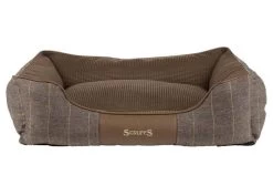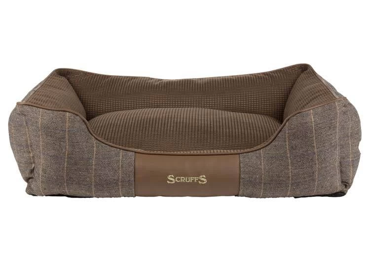 Hondenmand Windsor Bruin Deze hondenmand heeft een chique uitstraling. De buitenzijde van de hondenmand is uitgevoerd in een bruine tweed stof en de binnenzijde in een contrasterende Chenille stof. De mand biedt een heerlijke rustplaats voor uw huisdier. De mand is afgewerkt met biezen van imitatie suède. Aan de voorzijde is het geborduurde logo van Scruffs verwerkt. De onderkant van de hondenmand is voorzien van een anti-slip laag. De hondenmand kan compleet in de machine gewassen worden. Kleur: bruin. Bepaal de juiste maat voor uw hond: